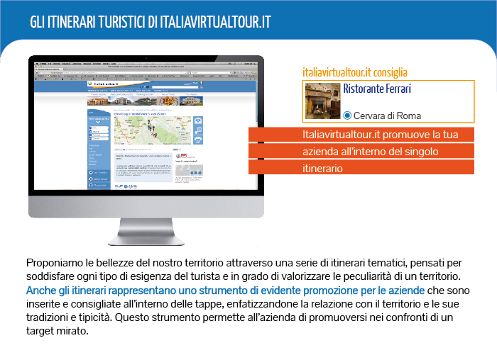 Anche gli itinerari rappresentano uno strumento di evidente promozione per le aziende che sono inserite e consigliate all’interno delle tappe, enfatizzandone la relazione con il territorio e le sue tradizioni e tipicità . Questo strumento permette all’azienda di promuoversi nei confronti di un target mirato.